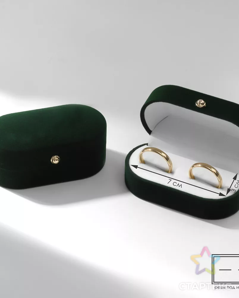 Футляр бархатный под серьги/ кольца/запонки, «Овал вытянутый» 7,5×4, цвет зелёный, вставка белая зелёный