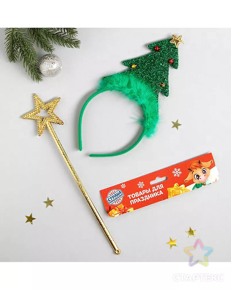 Карнавальный набор «Маленькая ёлочка» ободок и палочка зеленого цвета
