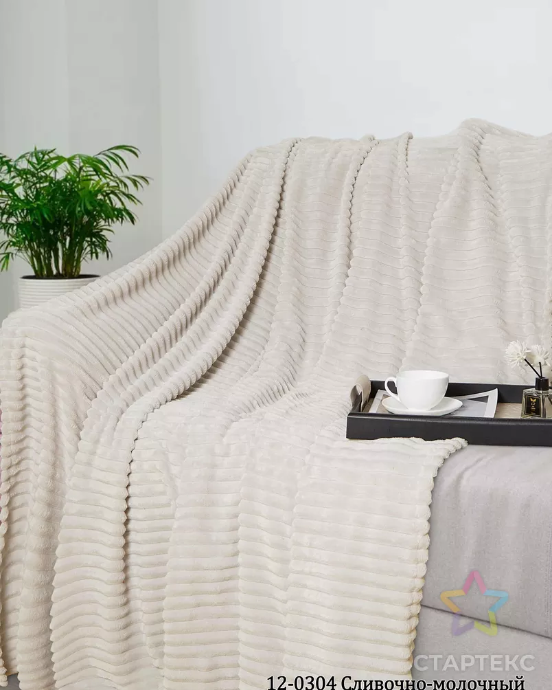 Ткань велсофт тисненый "Paradise" 100% п/э 205 см (265) диз. Страйп 12-0304 (Сливочно-молочный)